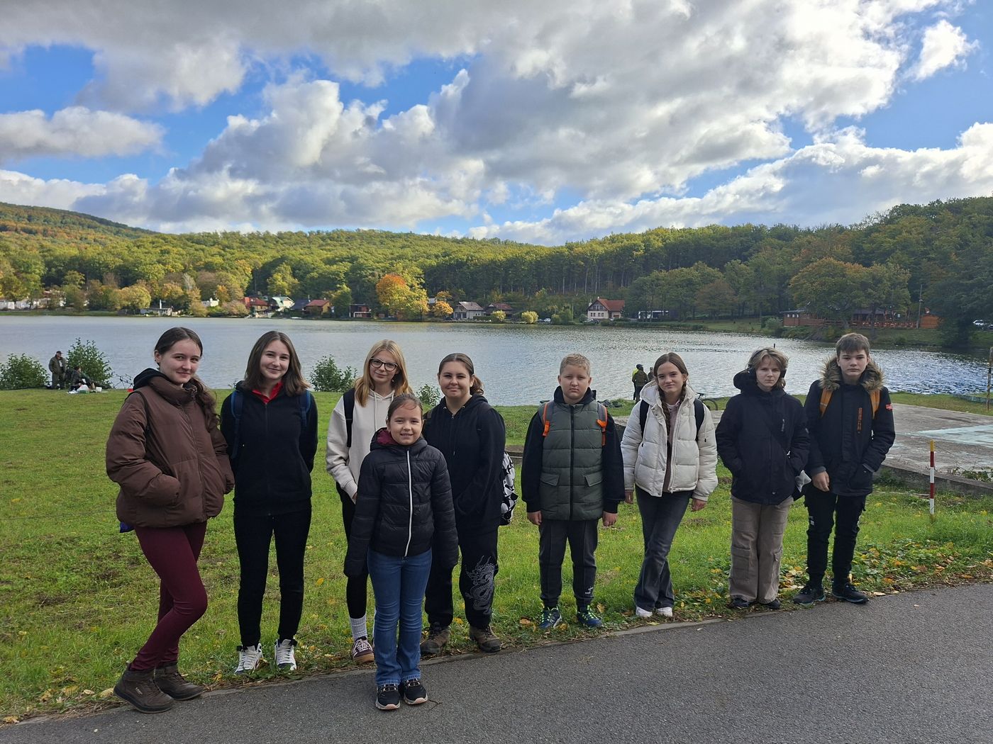 Príjemné víkendové jesenné počasie sme so žiakmi z Turistického krúžku využili na nenáročnú túru na zrúcaninu hradu Vinné. Gotický hrad bol postavený pravdepodobne v druhej polovici 13.storočia ako strážny hrad na ochranu obchodnej cesty vedúcej do Poľska. Trasu sme začali pri Vinianskom jazere odkiaľ sme pokračovali po žltej turistickej značke až na vrchol andezitového kopca.