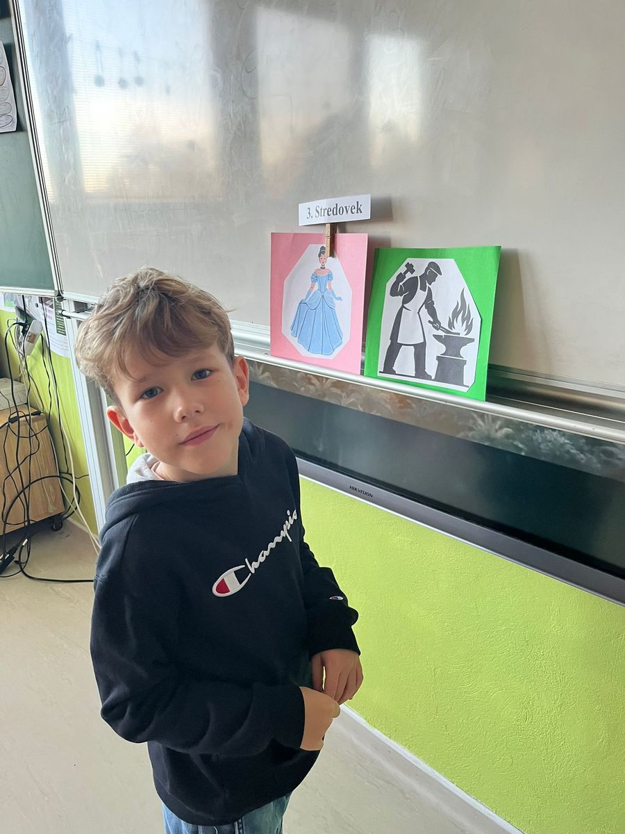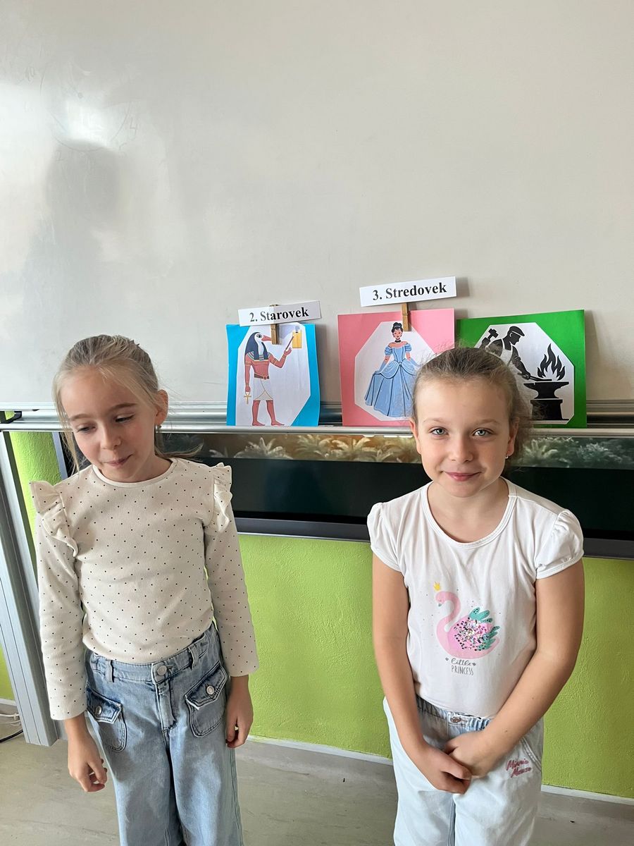 Najprv sme si vysvetlili, čo je to časová os. Vďaka nej sme zistili, čo bolo veľmi dávno (pravek a starovek), čo bolo dávno (stredovek) a čo je nedávno (novovek). Deti lúštili hádanky o pračloveku, faraónovi, rytierovi či kováčovi, tiež sme sa snažili postavy začleniť do jedného z období.