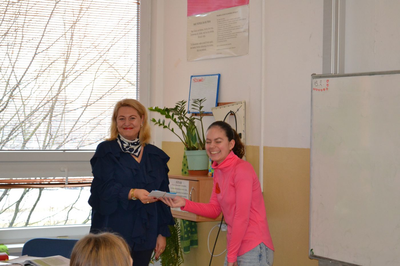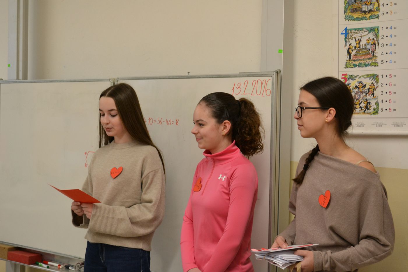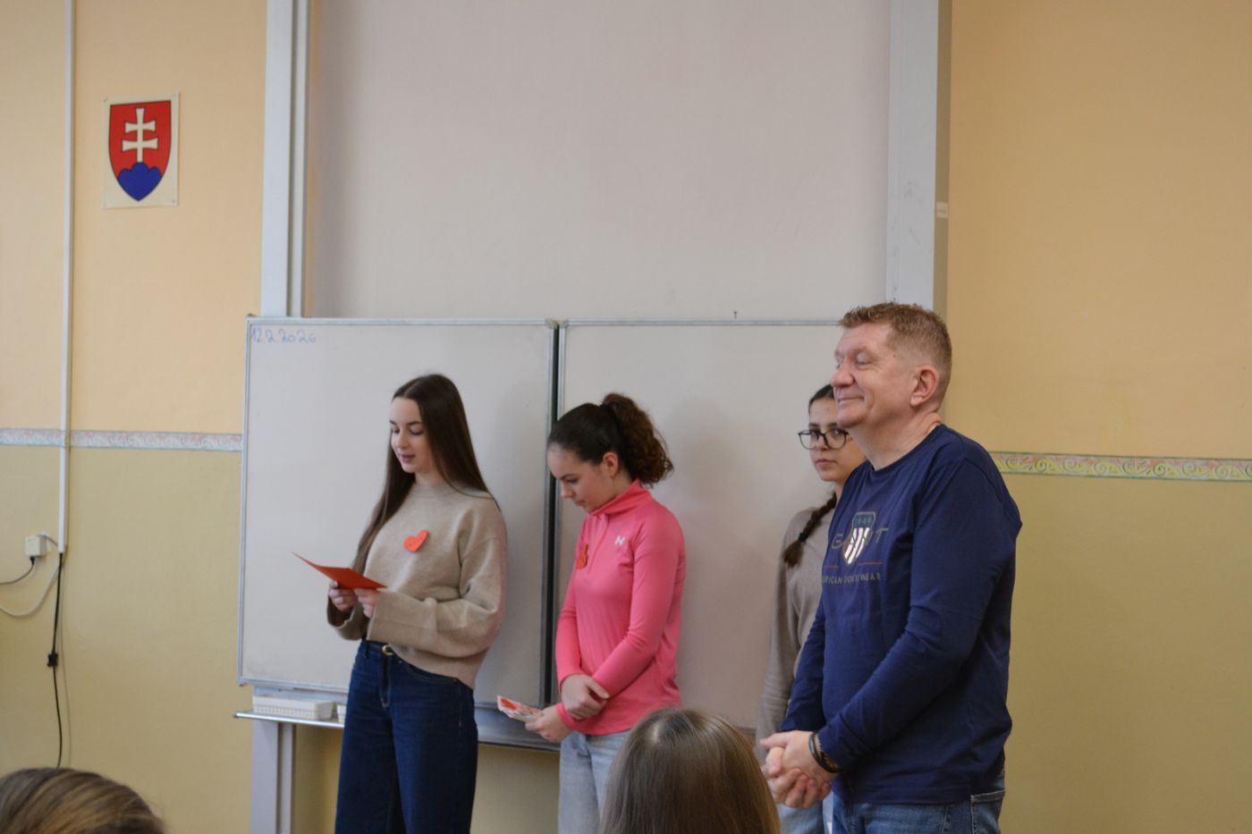 Členovia školského parlamentu sa deň pred sviatkom sv. Valentína rozpŕchli po škole, aby odovzdali valentínky, ktoré si žiaci pripravili nielen pre svojich spolužiakov a kamarátov, ale aj pre učiteľov, asistentov, vychovávateľov a nepedagogických zamestnancov školy. Ďakujeme všetkým, ktorí sa do tejto aktivity zapojili a veríme, že pripomenutie toho, aké je dôležité mať okolo seba dobrých priateľov a ľudí, na ktorých nám záleží, Vám všetkým spríjemnilo tento deň.
