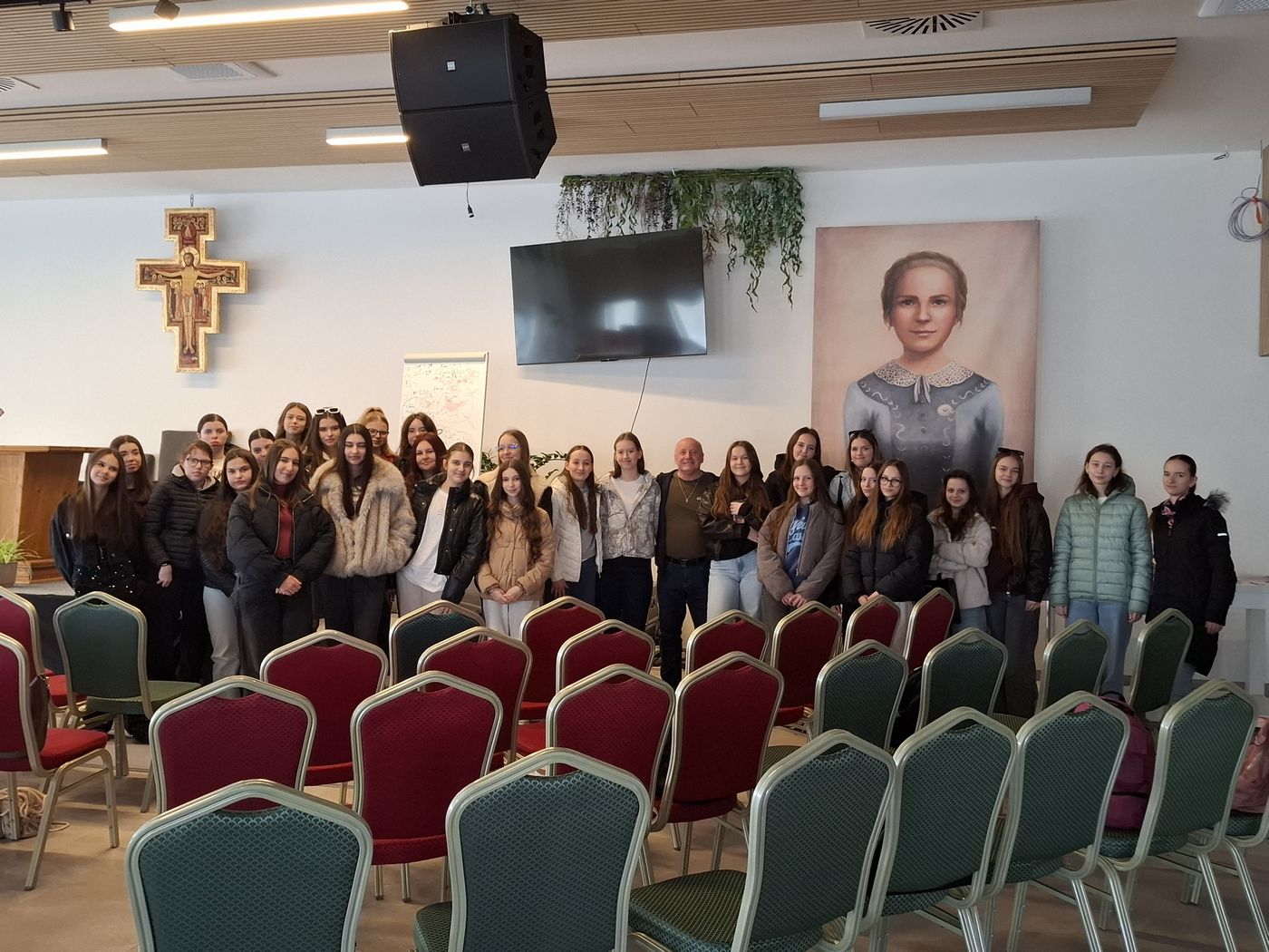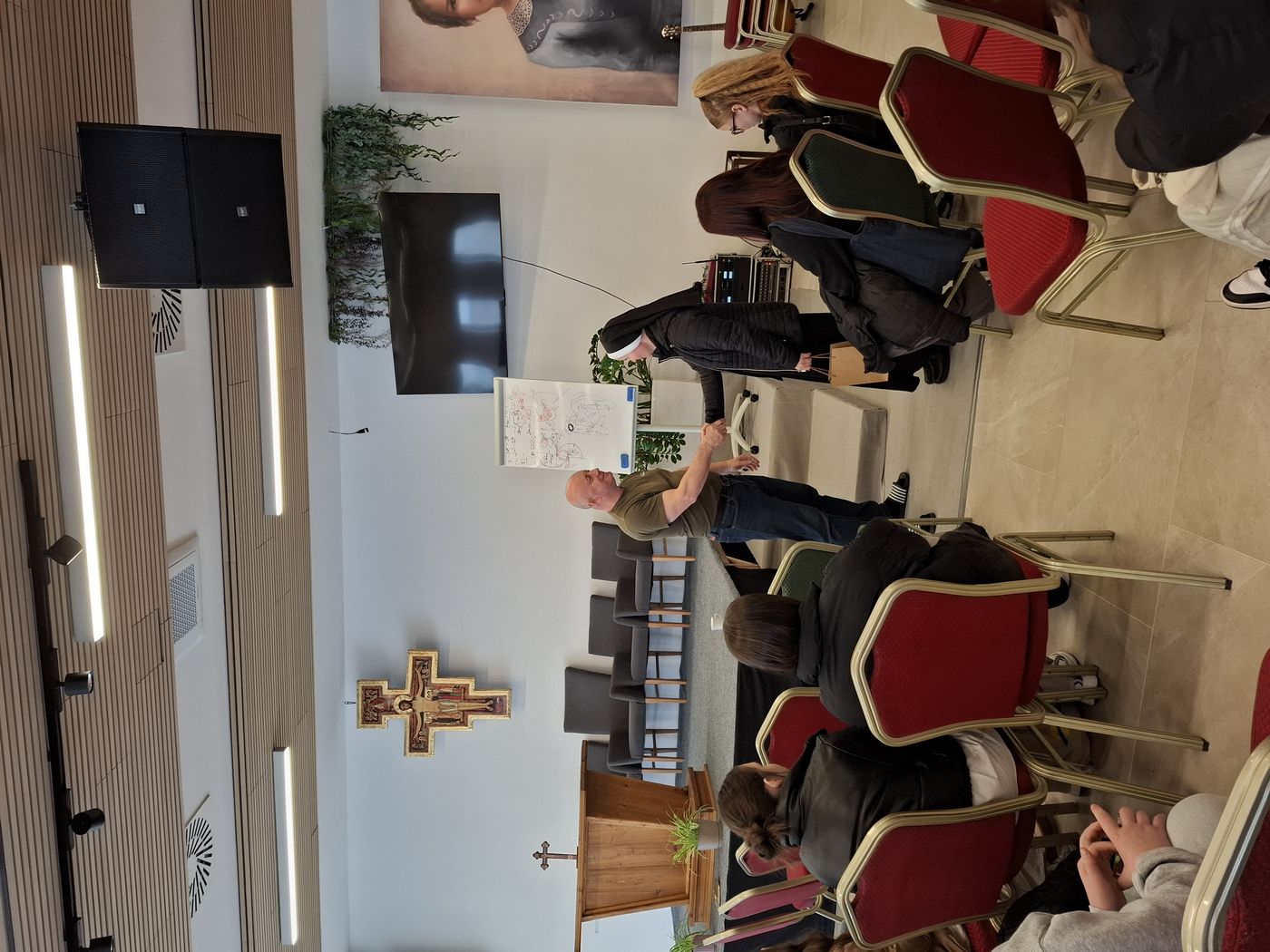 Naša prvá zastávka bola v Pastoračnom centrum pre mladých, kde nás privítal duchovný správca otec Pavol Hudák a porozprával nám o vzťahoch medzi rodičmi a deťmi, dievčatami a chlapcami. Po krátkej prestávke sa prihovoril osobitne dievčatám, a potom dostali priestor aj chlapci.