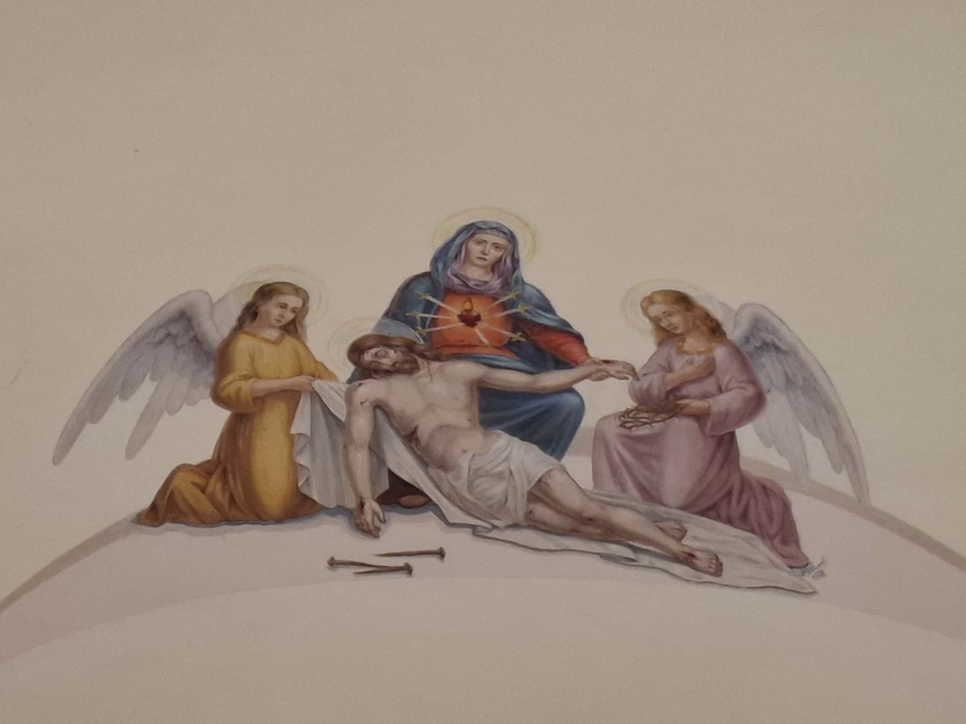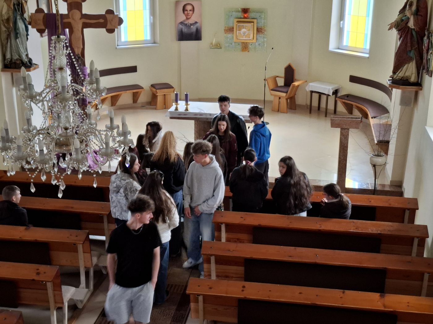 Druhá zastávka bola v rímskokatolíckom kostola Sedembolestnej Panny Márie, kde sme si uctili relikvie mladej mučeníčky v podobe kamenno-drôteného srdca.