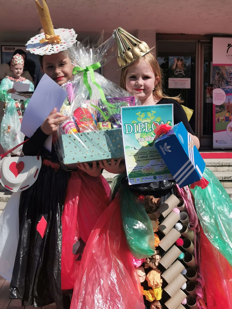 Dňa 22.apríla si každoročne pripomíname Deň Zeme. Pri tejto príležitosti sme sa zúčastnili zaujímavej akcie, kde nechýbala MÓDNA PREHLIADKA na ktorej nás reprezentovali naše žiačky Soňa Tovtyn – Kráľovná recyklácie a Alica Takáčová – Žolíková slečna. V priebehu akcie boli rôzne súťaže a tanečné vystúpenia našich žiakov. Počas prehliadky sme mohli vidieť množstvo nápaditých modelov, ktoré ukázali, že aj z bežného odpadu sa dá vytvoriť niečo pekné a zaujímavé. Najväčší úspech sme mali my, pretože titul získala naša Žolíková slečna – Ajka ,ktorá svojim outfitom a vystúpením zaujala porotu aj divákov. Veľké ďakujem patrí vychovávateľkám Danke a Sime ,ale aj celému kolektívu vychovávateľov.