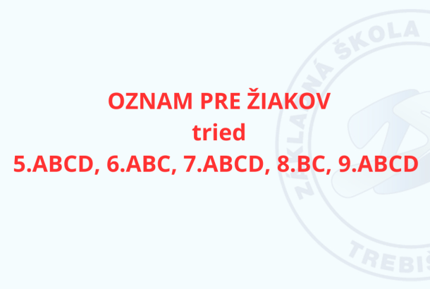 Oznam pre žiakov tried 5.ABCD, 6.ABC, 7.ABCD, 8.BC, 9.ABCD