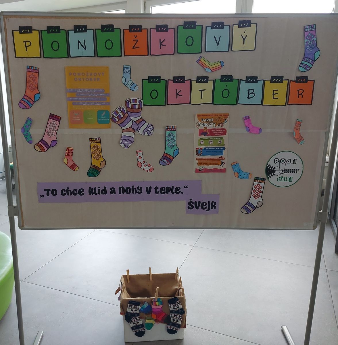 Na vrátnici školy je škatuľa, do ktorej môžete ponožky odovzdať. Prosíme Vás, aby to boli iba nové, nepoužité ponožky pre deti, ale hlavne dospelých.