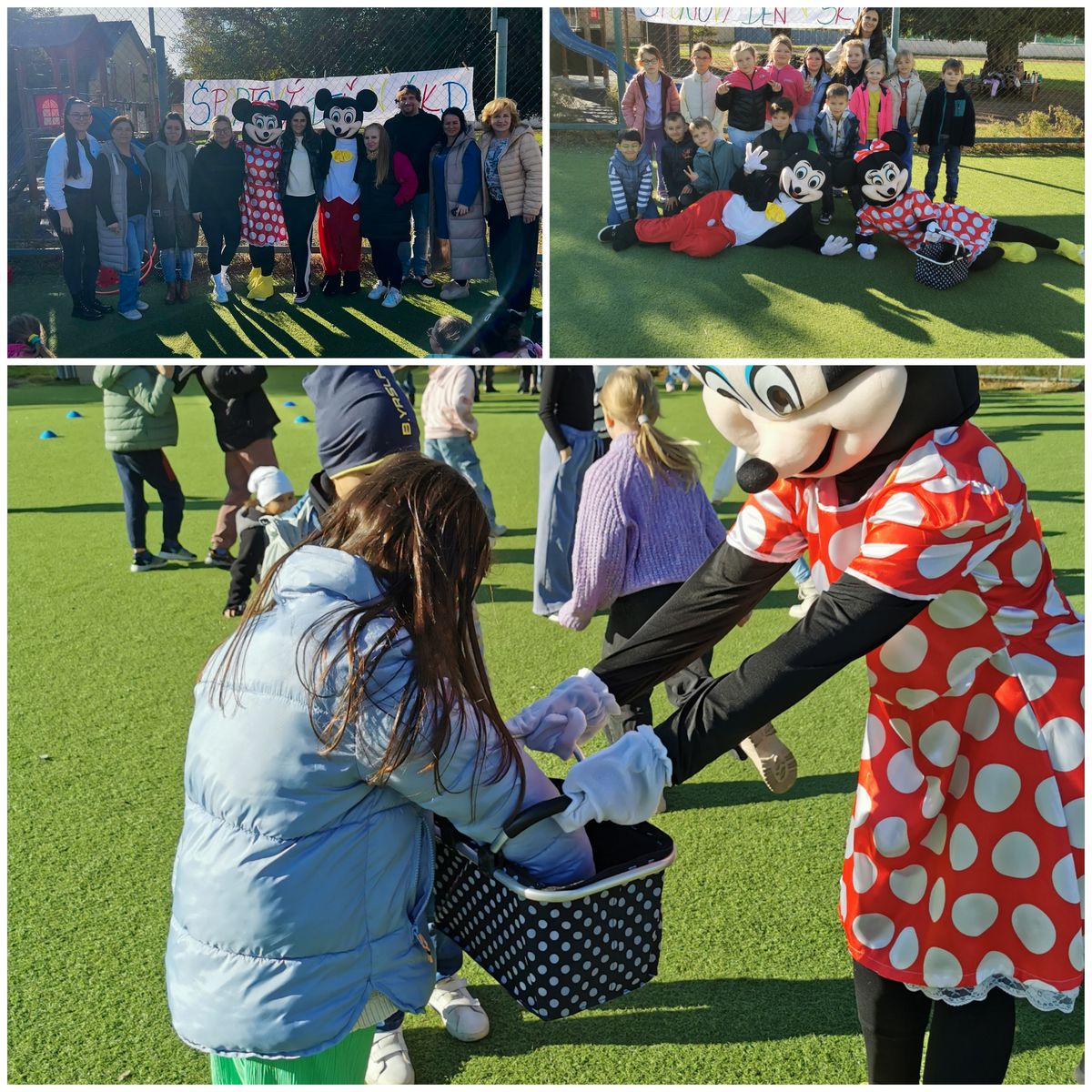 Najväčším prekvapením boli naši milí hostia - MICKEY a MINNIE, ktorí sa s nami zabávali, povzbudzovali športovcov a rozdávali úsmevy.