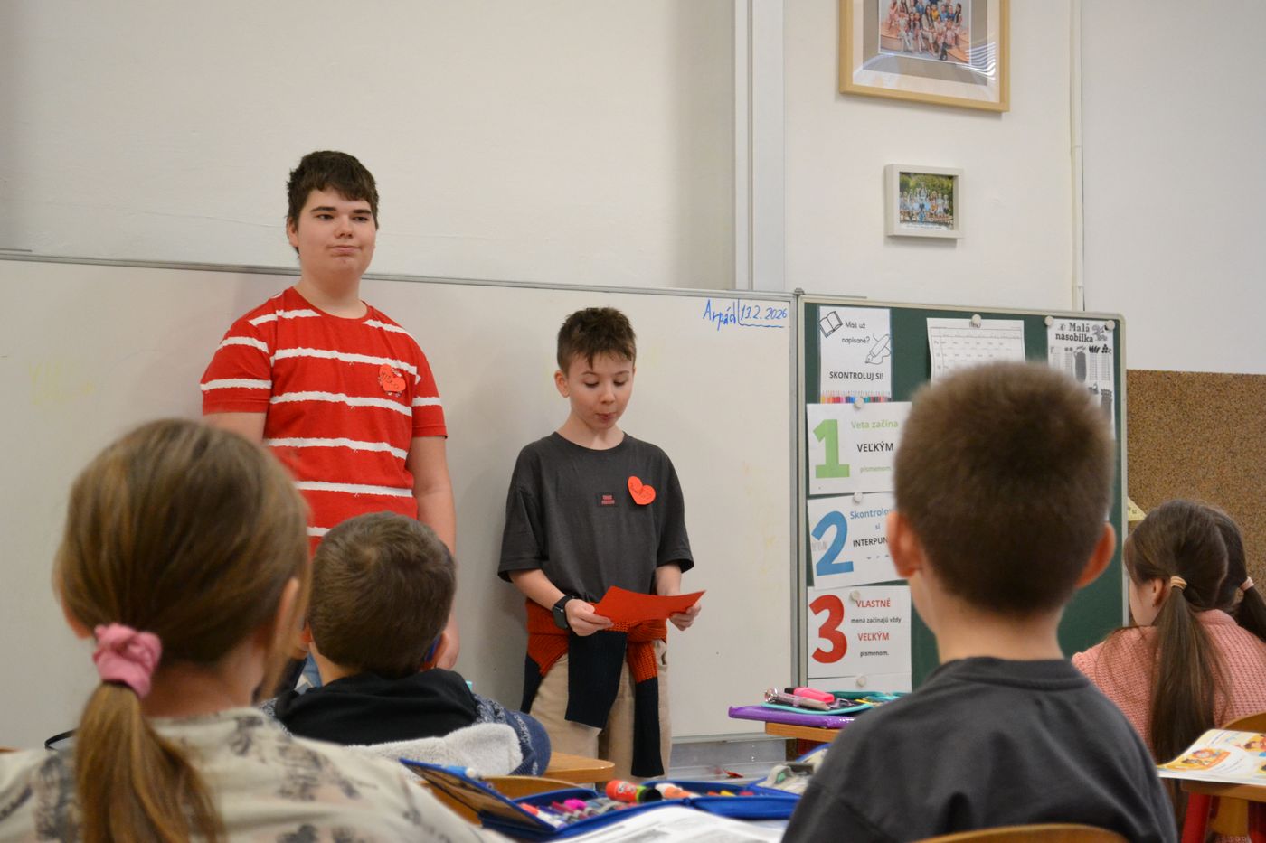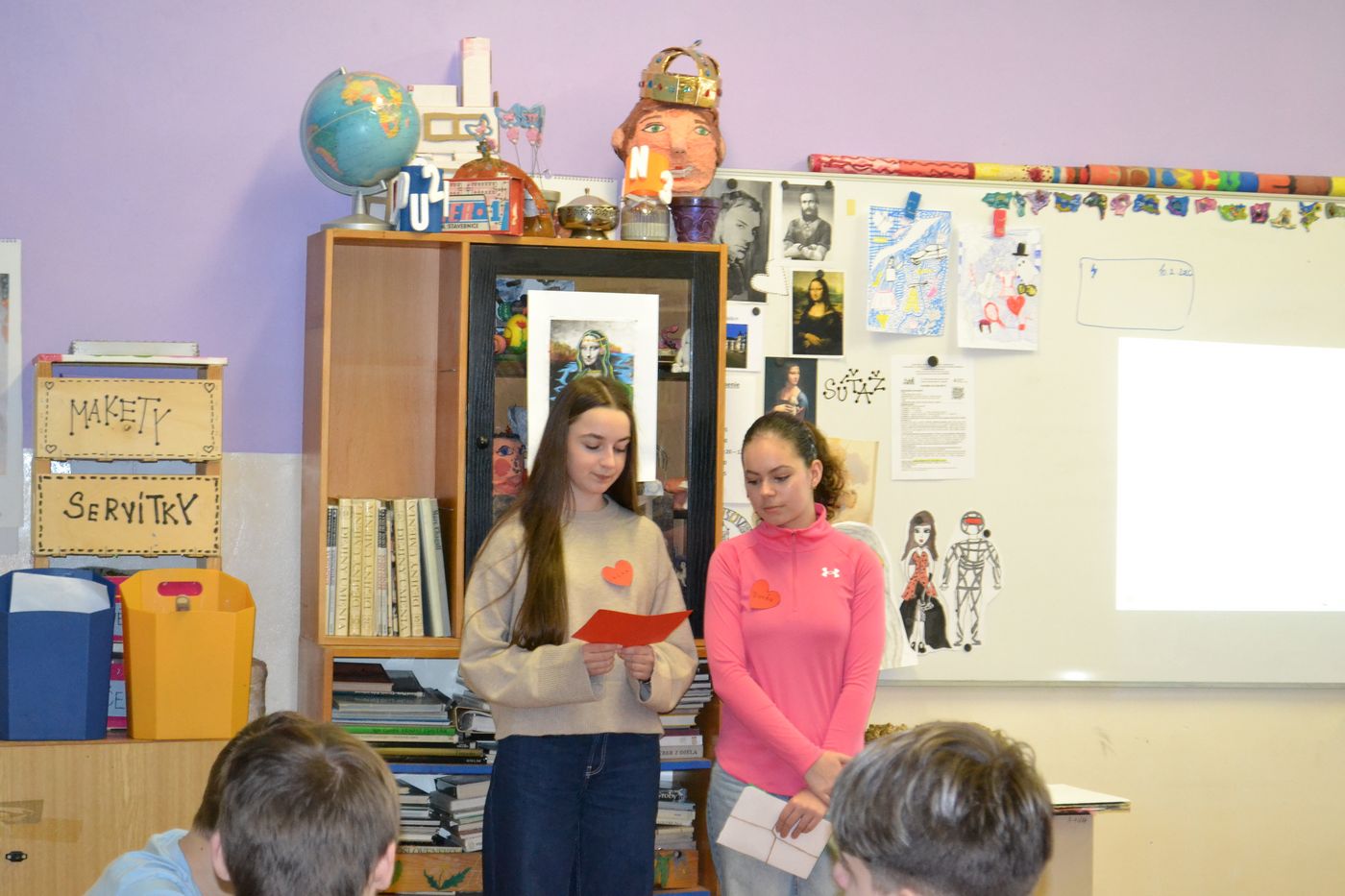 Členovia školského parlamentu sa deň pred sviatkom sv. Valentína rozpŕchli po škole, aby odovzdali valentínky, ktoré si žiaci pripravili nielen pre svojich spolužiakov a kamarátov, ale aj pre učiteľov, asistentov, vychovávateľov a nepedagogických zamestnancov školy. Ďakujeme všetkým, ktorí sa do tejto aktivity zapojili a veríme, že pripomenutie toho, aké je dôležité mať okolo seba dobrých priateľov a ľudí, na ktorých nám záleží, Vám všetkým spríjemnilo tento deň.