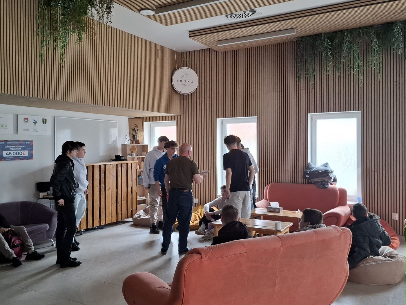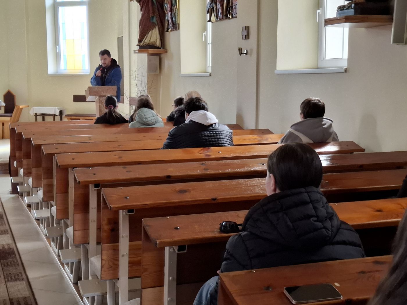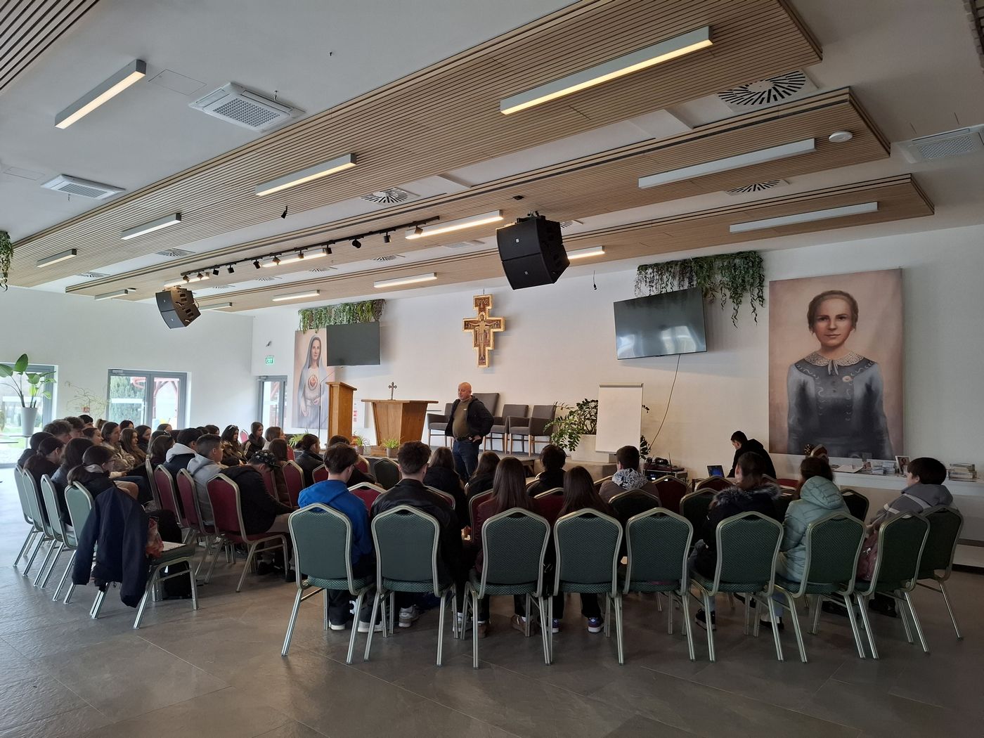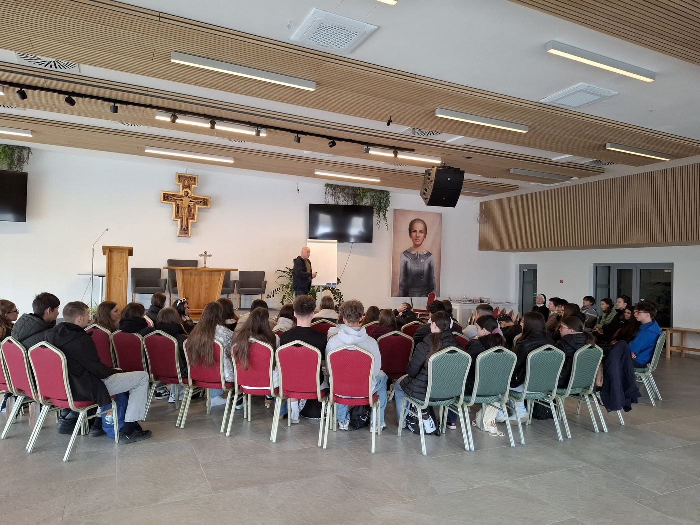 Naša prvá zastávka bola v Pastoračnom centrum pre mladých, kde nás privítal duchovný správca otec Pavol Hudák a porozprával nám o vzťahoch medzi rodičmi a deťmi, dievčatami a chlapcami. Po krátkej prestávke sa prihovoril osobitne dievčatám, a potom dostali priestor aj chlapci.