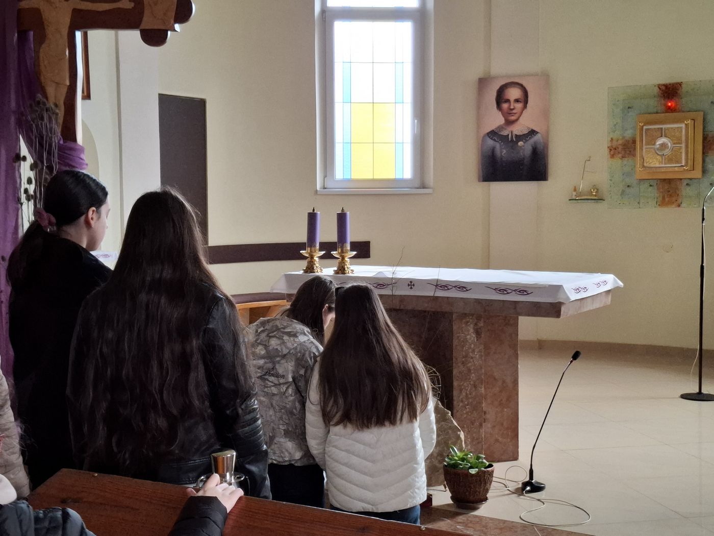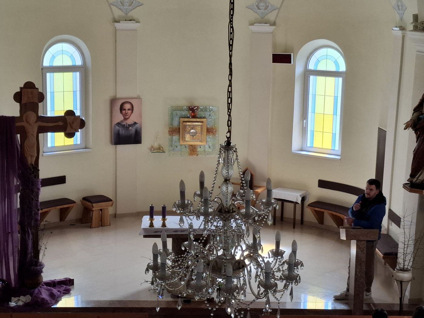 Druhá zastávka bola v rímskokatolíckom kostola Sedembolestnej Panny Márie, kde sme si uctili relikvie mladej mučeníčky v podobe kamenno-drôteného srdca.