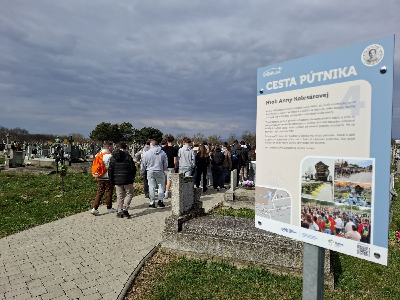 Tretia zastávka bola na cintoríne pri jej hrobe, pomodlili sme sa 3x Zdravas´ Mária za múdre, čisté a milujúce srdce.