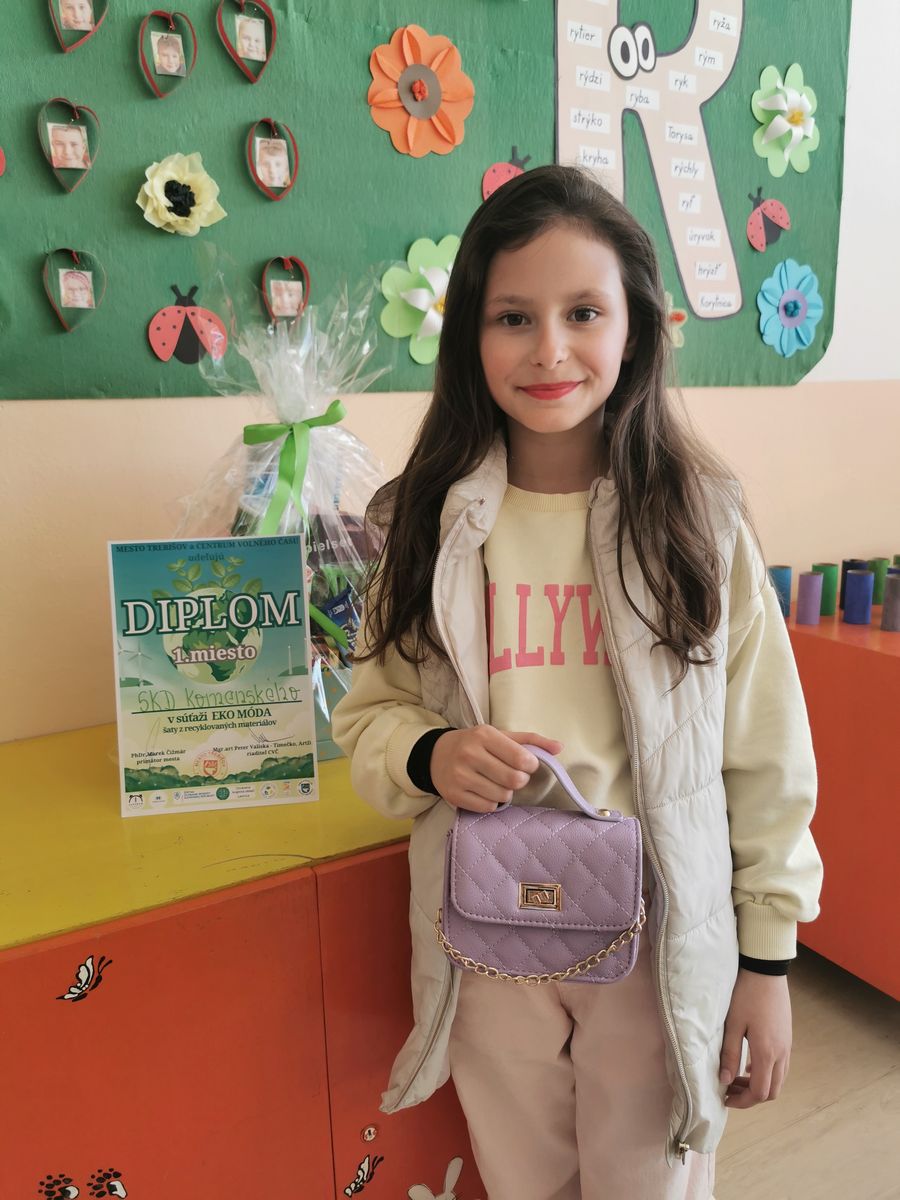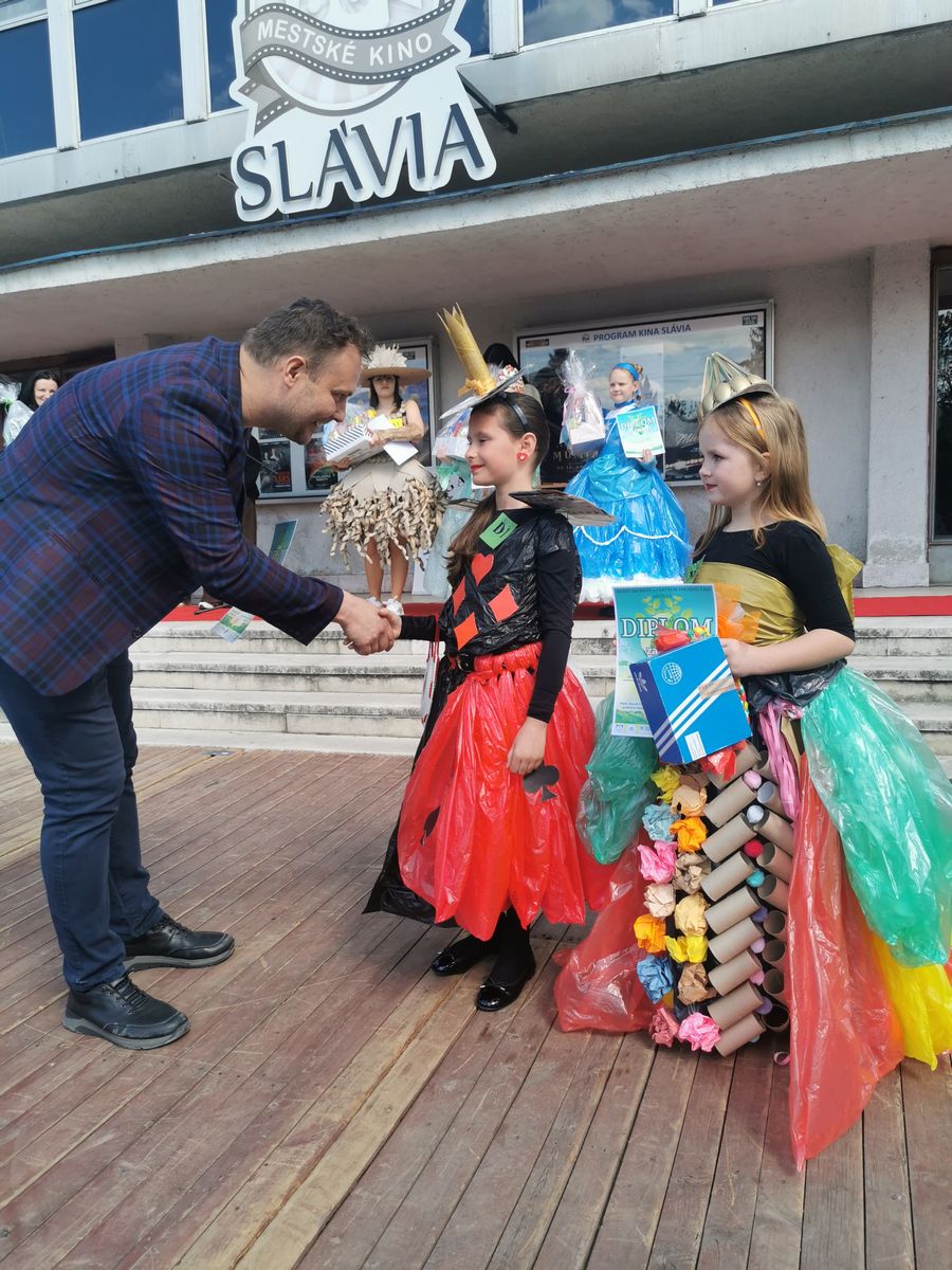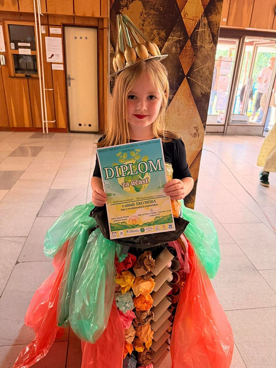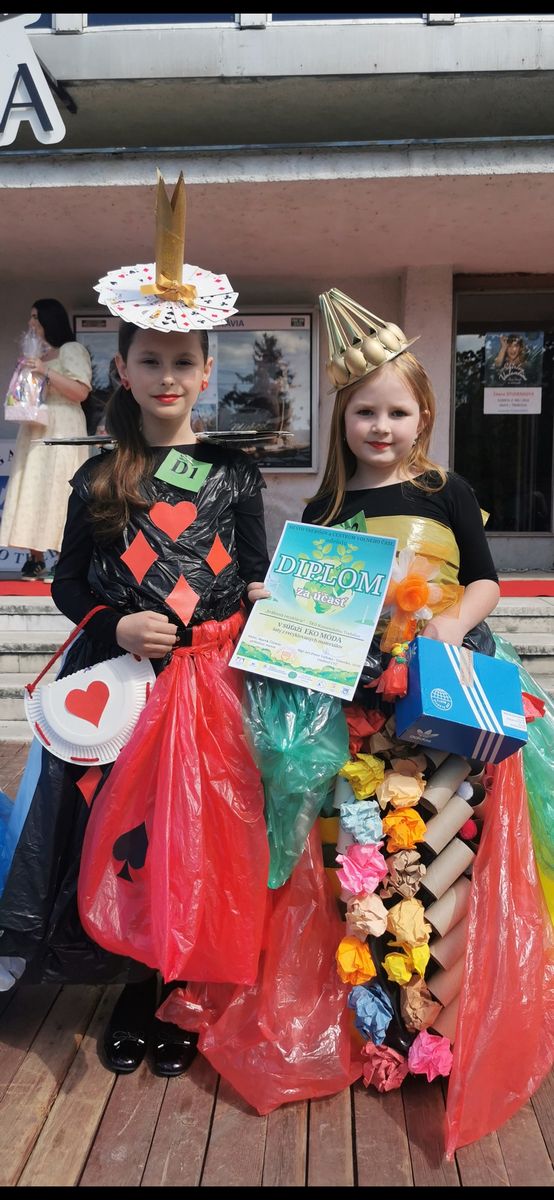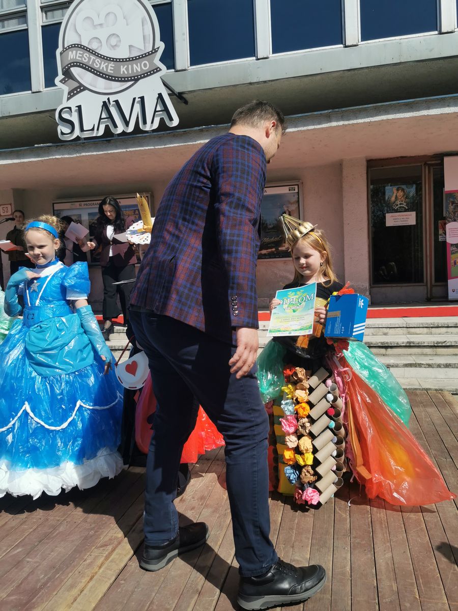 Dňa 22.apríla si každoročne pripomíname Deň Zeme. Pri tejto príležitosti sme sa zúčastnili zaujímavej akcie, kde nechýbala MÓDNA PREHLIADKA na ktorej nás reprezentovali naše žiačky Soňa Tovtyn – Kráľovná recyklácie a Alica Takáčová – Žolíková slečna. V priebehu akcie boli rôzne súťaže a tanečné vystúpenia našich žiakov. Počas prehliadky sme mohli vidieť množstvo nápaditých modelov, ktoré ukázali, že aj z bežného odpadu sa dá vytvoriť niečo pekné a zaujímavé. Najväčší úspech sme mali my, pretože titul získala naša Žolíková slečna – Ajka ,ktorá svojim outfitom a vystúpením zaujala porotu aj divákov. Veľké ďakujem patrí vychovávateľkám Danke a Sime ,ale aj celému kolektívu vychovávateľov.