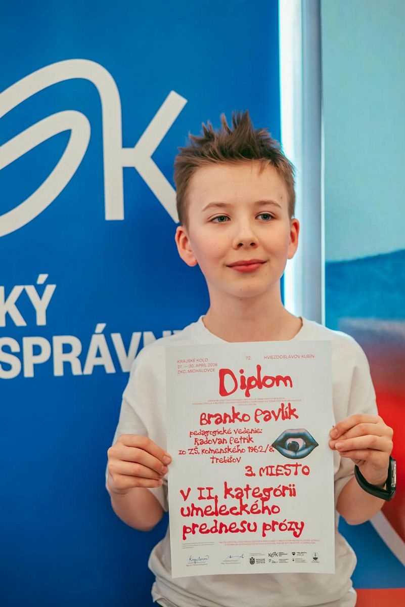 Branko podal veľmi dobrý výkon, statočne reprezentoval našu školu a porote (aj nám) dokázal, že pekné slovo má stále silu. Výsledok nás veľmi potešil.